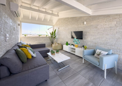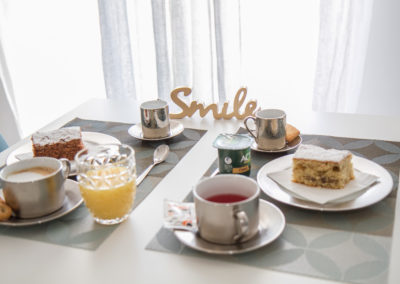 Una zona Living luminosissima con vista sul verde della Niviera vi farà sentire a casa. Al mattino, dopo un sereno risveglio, una ricca e nutriente colazione tipica pugliese vi attende.